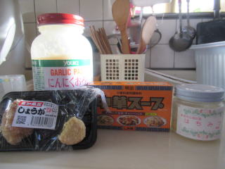 かみさんがずっと喉が痛いと○○散のど飴、粒剤などを飲んでいたが治らず。んじゃ俺が若いときから、いざと言う時に飲んでいたものを呑むか。てなことで、種生姜を擦り、はちみつ・おろしにんにくを入れて少しだけ中華スープの素を入れたスープを夜8時に飲ませた。