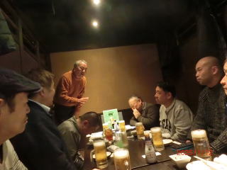 一つ隣で立教大学の落研だったという同い年の方。みなさん知り合いで言いたい放題 新入社員の男の子がお酌の行き場に困っていたので、