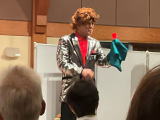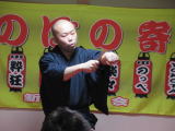 終了後会場から「飴をおなかに落っことしたんだって、面白かった」「南京玉すだれが面白かった」と騒いでいる。着替えている私にガラス越しで「どこから来たの、お笑いの人」などと声をかけ続けてくれた。