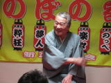 今年11年目の奉納落語 関川村 子兎神社 「親子酒」 ばぁさん ばぁさんとネタを話していたらお客様が「はい」と答えた。ニコニコしながら絶対今言うだろうと思ったので「となりのばぁさんが返事したじゃないかよ」と言い返す。爆笑